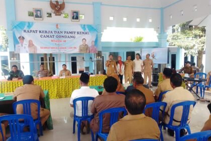 BOJONEGORO –Narasiplus.my.id- Pemerintah Kecamatan Gondang, Kabupaten Bojonegoro, menggelar rapat kerja sekaligus acara pamit kenal camat yang berlangsung khidmat dan penuh kebersamaan, Selasa (3/2/20...
