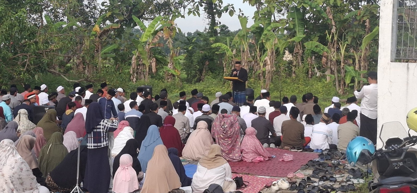 Kegiatan yang dimulai sejak pukul 07.00 WIB tersebut berlangsung dengan tertib, aman, dan penuh khidmat. Sekitar ±150 jamaah dari berbagai wilayah sekitar turut hadir untuk melaksanakan ibadah sholat Idul Fitri bersama.